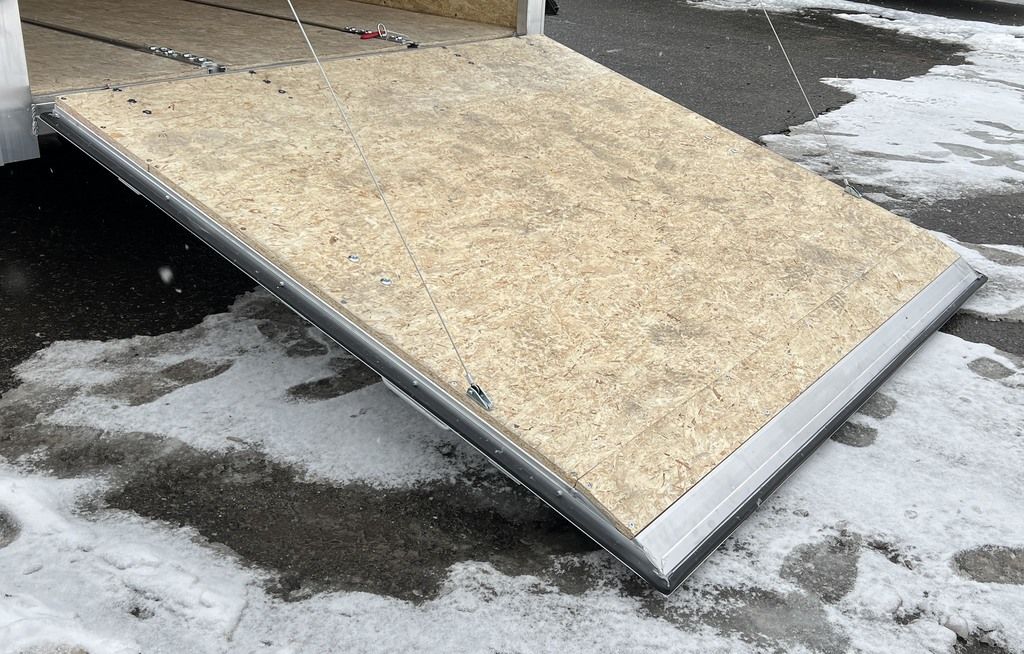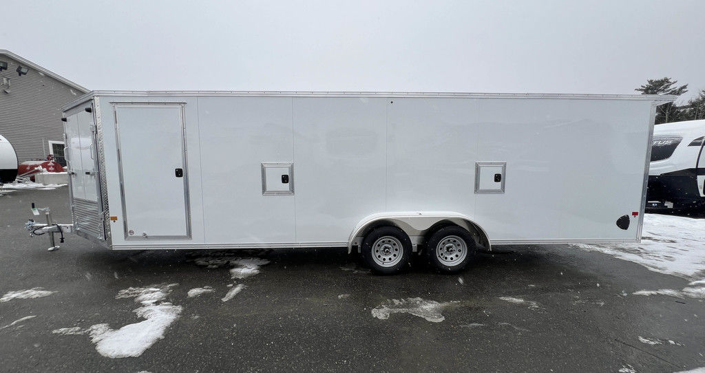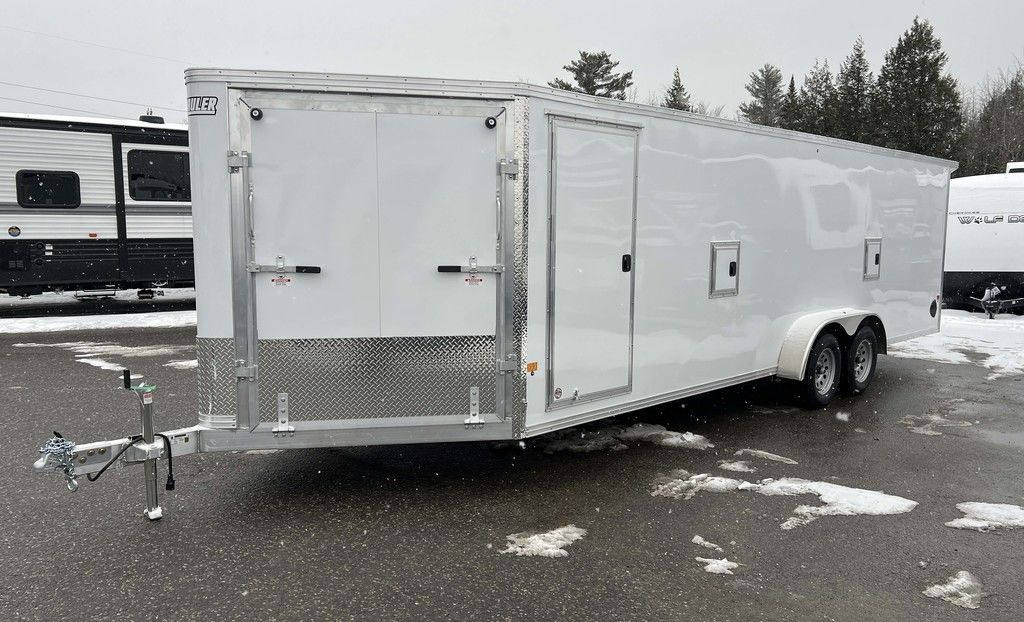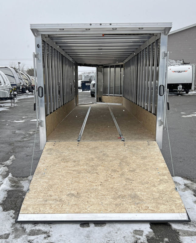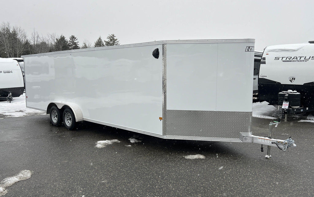2024 E-Z Hauler 7×24 Aluminum 4-Place Drive In/Out Snowmobile Trailer w/Tapered Ramps, Rear Door Canopy. 2080 lbs.
